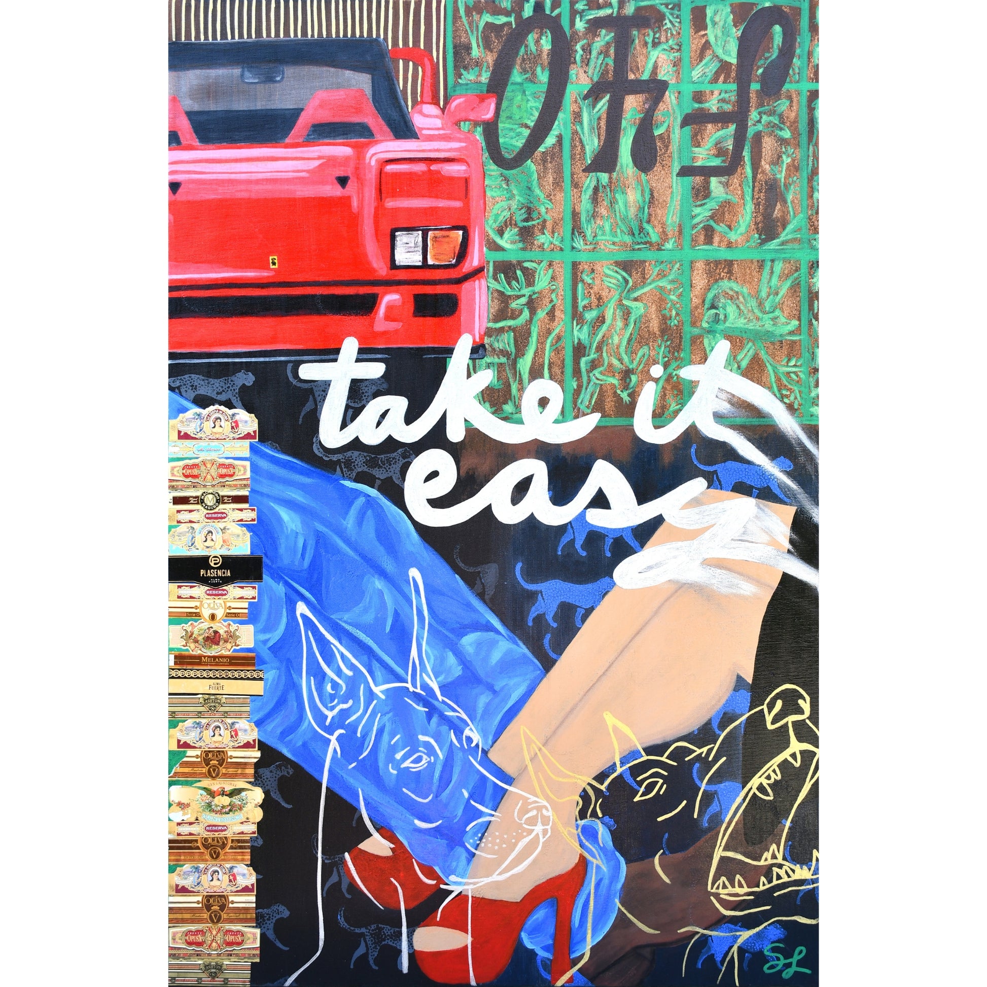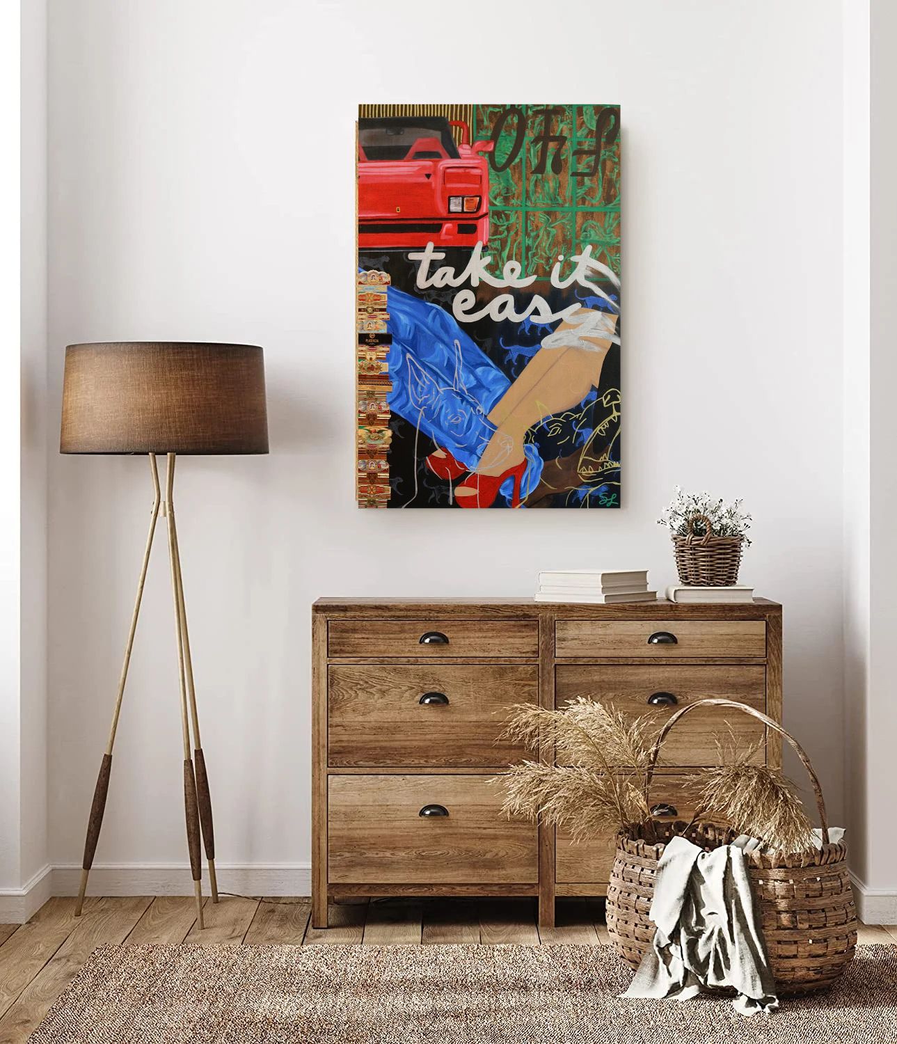 Framed Mixed Media Painting on Canvas